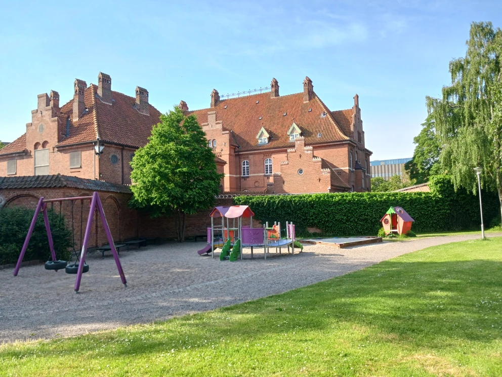 Legepladsen består af sjove og farverige legeredskaber, der er egnet til de mindste børn. På legepladsen er der både legetårn, gynger og sandkasse.