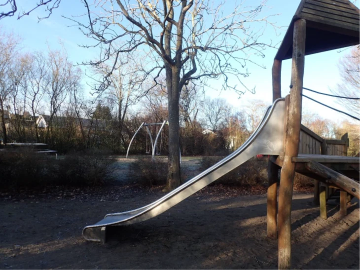 I parkens ene ende ligger en fin lille legeplads. Legepladsen indeholder legetårn, rutsjebane og gynger udført i naturlige materialer.