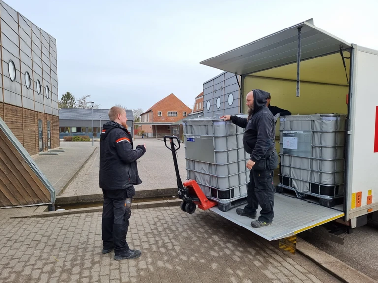 Det var en leverance udover det sædvanlige, der landede på Jyderup Skole i morges. Her blev et på alle måder usædvanligt grønt batteri installeret i skolens kælder.