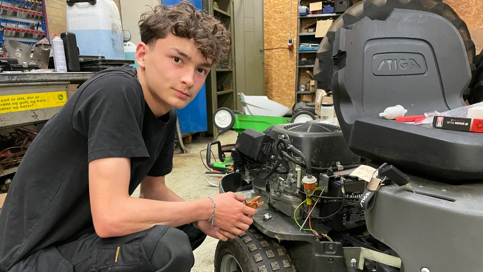 Maskinforretningen i Jyderup servicerer og reparerer have- og parkmaskiner – især havetraktorer. Og da Lukas i forvejen har knallertkørekort og egen scooter, så er det ikke fremmed for ham at rode med teknik.