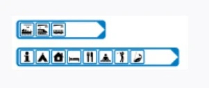 Tavlerne har blå tekst og blå ramme på hvid baggrund og indeholder et godkendt servicesymbol. Virksomhedsnavn må gerne anvendes, men logoer og reklamer er ikke tilladt. Generelle betegnelser som "Gårdbutik", "Antik" eller "Galleri" kan også bruges.