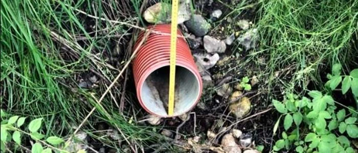 - Er der opstået huller i jorden over ledningen, som kan vise, at rørledningen er faldet sammen?